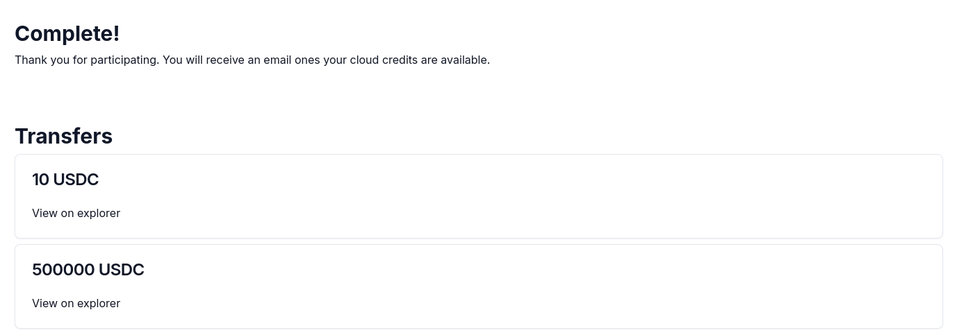 Click the transfer button with your ticket size ($500,000 in the screenshots). You will be asked to sign a transaction in your wallet.