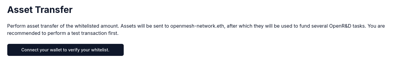 You can only perform the asset transfer after [whitelisting](https://docs.openmesh.network/openmesh/openmesh-expansion-program/how-to-whitelist) and receiving an email confirming your whitelist.