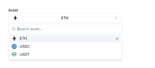 <figure><img src="https://content.gitbook.com/content/TYLHtAefCtvSlExunuG5/blobs/nBX3ut7831ziPQuQjPwi/image.png" alt=""><figcaption><p>The current ETH/USD exchange rate is provided underneeth this dropdown. Stablecoins have a fixed exchange rate of 1:1.</p></figcaption></figure>
