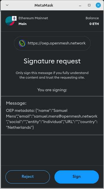 <figure><img src="https://content.gitbook.com/content/TYLHtAefCtvSlExunuG5/blobs/TI8Izr84tTxk61gb3oJZ/image.png" alt=""><figcaption><p>Example of a signature request in the MetaMask browser extension</p></figcaption></figure>
