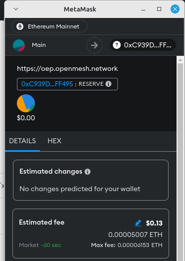 <figure><img src="https://content.gitbook.com/content/TYLHtAefCtvSlExunuG5/blobs/b7hePJXhTskY33DmTd00/image.png" alt=""><figcaption><p>Example of a reserve transaction request in the MetaMask browser extension</p></figcaption></figure>