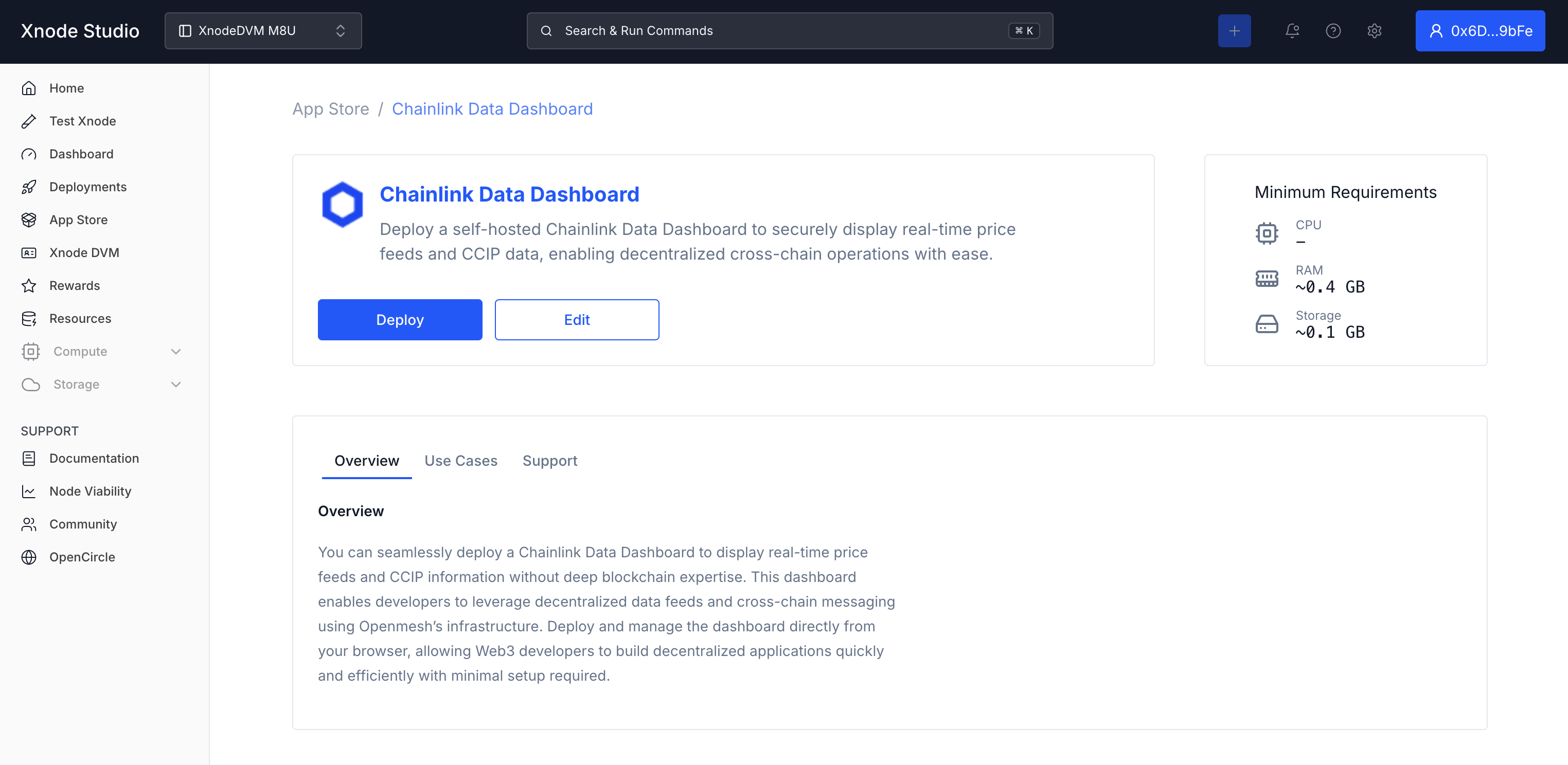 Then visit the App Store from within your Xnode Studio dashboard and select the Chainlink app template.