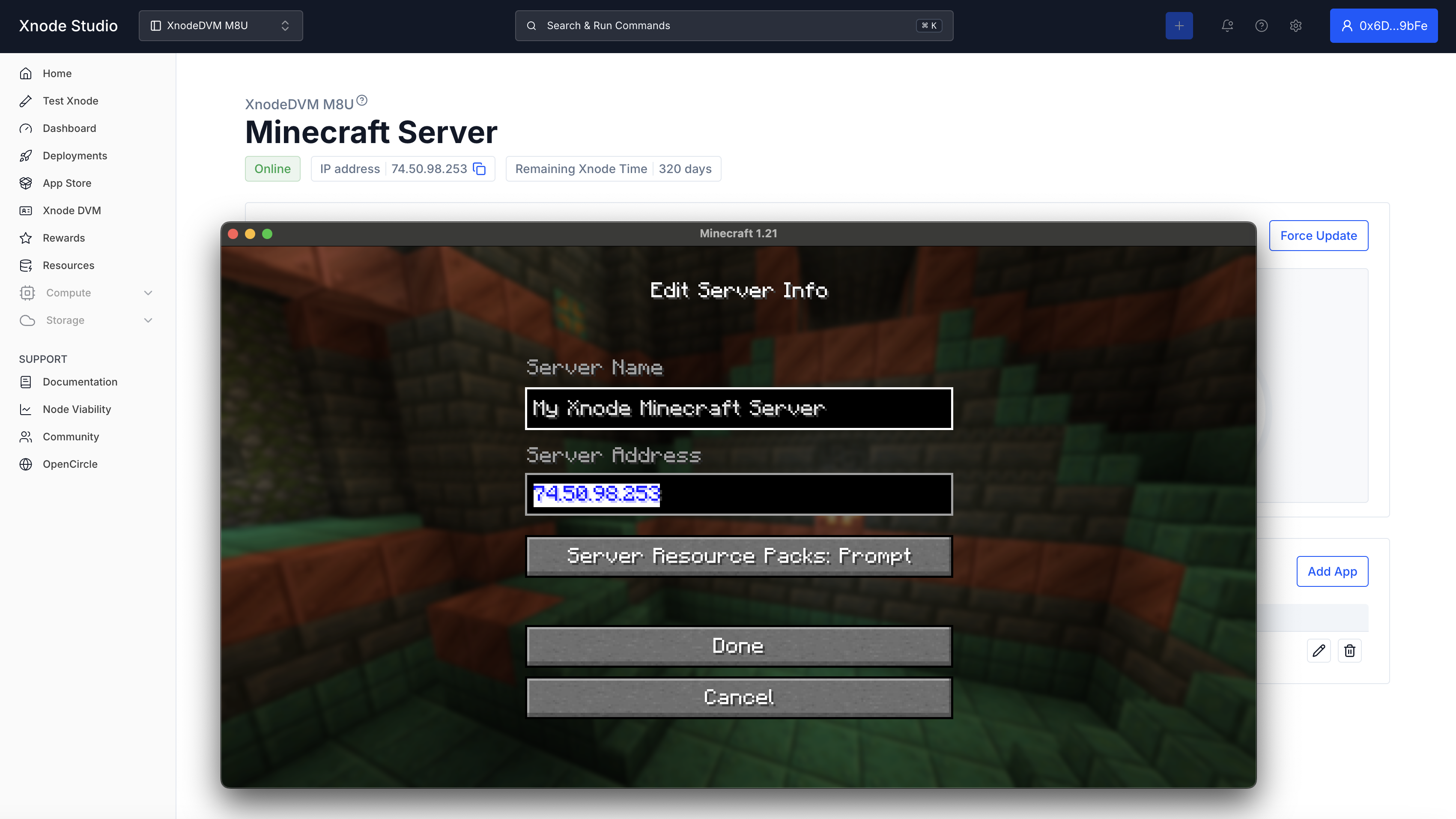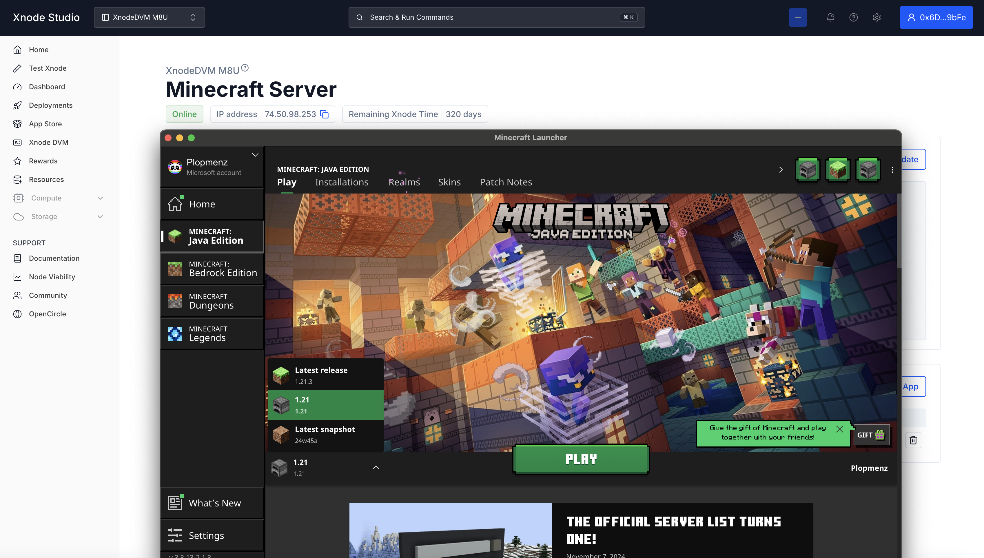 It is easy to run a Minecraft server on top of your Xnode by following this App Template for deploying Minecraft!